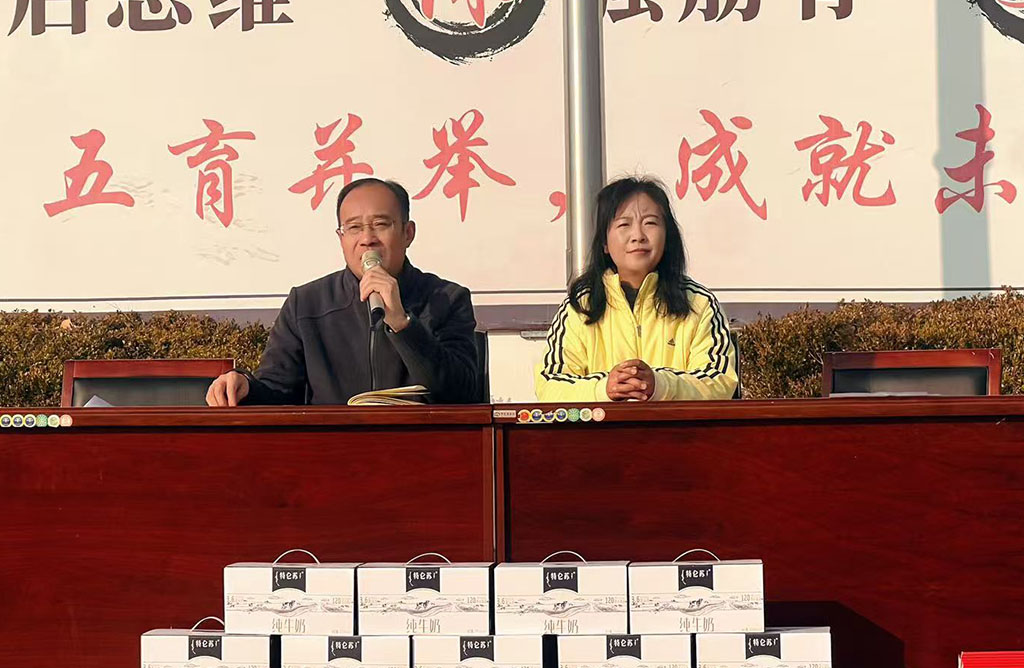 最令人期待的颁奖环节如期而至,马主任带着满满“好礼”走上领奖台——成箱堆叠的特仑苏散发着醇厚香气,整箱的风味酸奶透着清爽,还有同学们超爱的AD钙奶整齐排列,酥脆香甜的嘉士利饼干与印着学校专属标识的特色奖本相映成趣,丰富的奖品瞬间点燃全场热情。